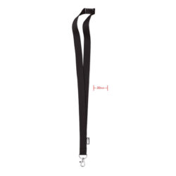 Lanyard with metal hook, detachable buckle and safety breakaway. 20 mm wide. Sublimation print available on white item only.