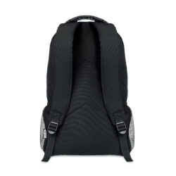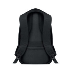 This 600D RPET backpack is great for everyday usage. Thanks to the padded shoulder strap it is comfortable to wear for longer periods. The main internal compartment can be opened completely so you have good access to all your items. The zipper is located on the backside for better security. The main compartment has smaller pockets which can hold many items. The backpack has a 13” laptop or tablet compartment. A smaller front compartment can be used to store smaller items.