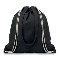 Canvas shopping bag with long handles and drawstring. 220 g/m². Produced under a certified standard for the use of harmful substances in textile.