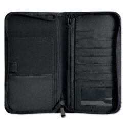 Travel wallet with zipper, made of microfiber. With several compartments for documents, cards, passports and a pen loop. Pen not included.