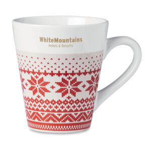 Ceramic mug (340ml) with Nordic style pattern. Individual box. Pad printing is not dishwasher safe. Ceramic transfer is dishwasher safe.