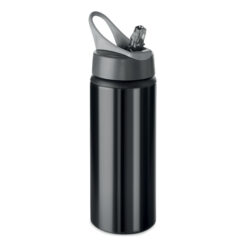 Aluminium single layer drinking bottle with foldable mouth piece and lid with hanger. Capacity 600 ml. Sublimation print available on white item only. Leak free.