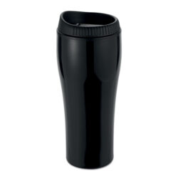 Double wall stainless steel travel cup in shinny finish with inner PP and lid. Capacity: 500 ml.