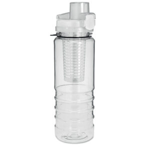 Drinking bottle in Tritan™ which is BPA free including an inside compartment for holding fruit. Automatic opening. Capacity: 700 ml. Not suitable for carbonated drinks