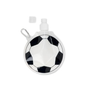 Foldable water bottle in football shape in BPA free plastic with carabiner. Capacity: 500 ml.