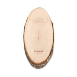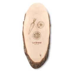 Medium size oval cutting board with bark manufactured in EU from Adler wood. Made from 1 piece of wood. Sizes may vary between each product.