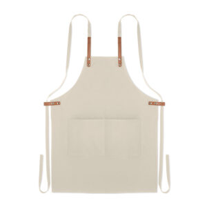 Adjustable kitchen apron with 2 front pockets in 340 gr/m² organic cotton/canvas. The contrasting brown straps give this apron a more premium look and feel. Whether you are a professional chef or an amateur home-cook, having the right equipment in your kitchen is essential. This apron is not only comfortable, durable and sustainable, it is also very useful thanks to the 2 front pockets. Store a recipe note or some small utensils in there for quick access. GOTS certified assuring an environmentally and socially responsible harvesting of raw material, manufacturing process up to labelling. Produced to the OEKO-TEX standard. Each apron is presented in an individual box.