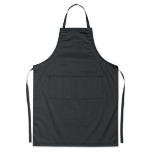 Adjustable kitchen apron with 2 front pockets in 10% cotton/90% polyester, 190gr/m². Sublimation print available on white item only. Produced under a certified standard for the use of harmful substances in textile.