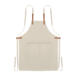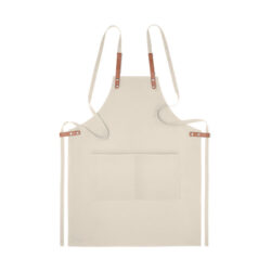 Adjustable kitchen apron with 2 front pockets in 340 gr/m² organic cotton/canvas. The contrasting brown straps give this apron a more premium look and feel. Whether you are a professional chef or an amateur home-cook, having the right equipment in your kitchen is essential. This apron is not only comfortable, durable and sustainable, it is also very useful thanks to the 2 front pockets. Store a recipe note or some small utensils in there for quick access. GOTS certified assuring an environmentally and socially responsible harvesting of raw material, manufacturing process up to labelling. Produced to the OEKO-TEX standard. Each apron is presented in an individual box.