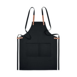 Adjustable kitchen apron with 3 front pockets in 240 gr/m² denim with cotton straps. The denim material gives this apron a tough and stylish look. The contrasting brown straps give the apron a more premium look and feel. Whether you are a professional chef or an amateur home-cook, having the right equipment in your kitchen is essential. Use the 3 front pockets to store a recipe note or some small utensils in there for quick access. Each apron is presented in an individual box.