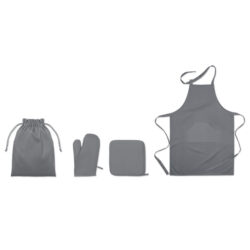 Twill cotton (250 gsm) Apron set with potholder, oven mitt in self material cord bag.
