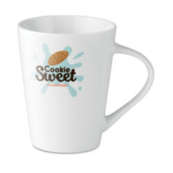 Porcelain conic mug of 250 ml capacity. Bulk packaging. Pad printing is not dishwasher safe. Ceramic transfer is dishwasher safe.
