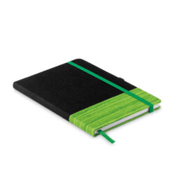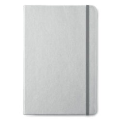 A5 notebook with soft PU cover and 96 lined pages closed by an elastic band in matching colour.