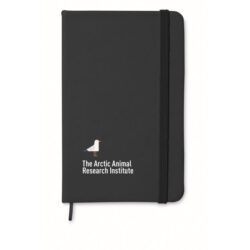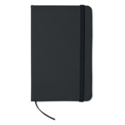 A5 notebook with 600D RPET hard cover and 80 lined recycled paper pages with an elastic band and page marker ribbon.