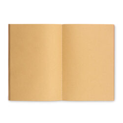 A4 Cardboard cover (250gr/m²) notebook with 80 stitched recycled pages in 70 gr paper.