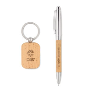 Gift set with twist ball pen in bamboo box. Blue ink. Bamboo is a natural product, there may be slight variations in colour and size per item, which can affect the final decoration outcome.
