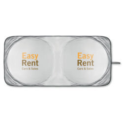Set of 2 car window shades made of polyester. Includes 2 suction cup holders. Perfect for both winter and summer to keep the weather at bay. This will keep your car cool during the summer by reflecting the sunlight away, and will keep the frost off your windshield when placed on the outside by offering a layer of protection.