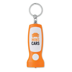 LED bulb torch in ABS with keyring. 3 AG3 batteries included. The barrel includes a LED light to illuminate the engraved logo.