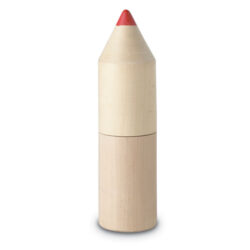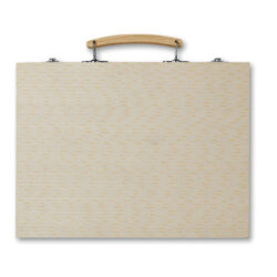 Mini artist’s set in wooden box including 8 crayons, 12 water colours, 1 paint brush, 1 sharpener, 1 eraser and 1 pencil.