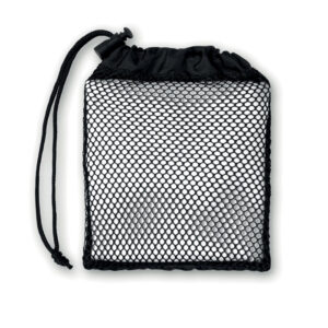 RPET sports towel with a higher water absorbency than a regular one. A great towel to bring with you to the gym for use during your workouts. It comes in a RPET non woven mesh bag so you can take it with you. Both the towel and the mesh bag are made from recycled PET, which make this a sustainable choice. Dimensions: 30×80 cm.