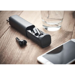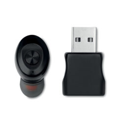 Single 5.0 wireless earbud built in microphone. Rechargeable Li-ion 50 mAh battery. Playing time approx. 4 hours. Presented in in PU/EVA pouch.