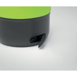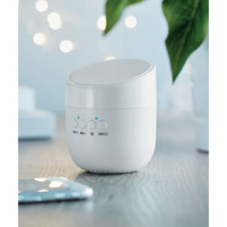 2.1 Wireless speaker in ABS in rubberized finish and LED light indication. 1 Rechargeable Lithium 400 mAh battery included. Including USB charging cable and 3,5 mm plug. Output data: 4 Ohm, 5V and 3W. Playing time aprox. 2h.