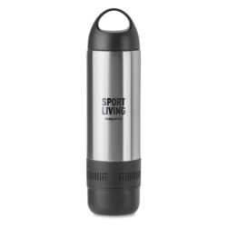 Wireless speaker bottle in double wall stainless steel. Rechargeable Li-on 300 mAh battery included. Micro USB cable included. Output data: 3W. Capacity: 400 ml.