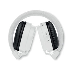 2.1 Foldable wireless headphone with mesh fabric. Playing time approx. 6 hours. Rechargeable 300 mAh battery. Including jack plug cable and micro UBS charging cable.