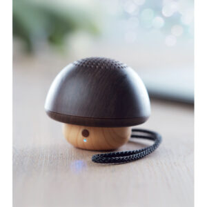 Mushroom shaped 5.0 wireless speaker in ABS with wooden look. 1 rechargeable Lithium 180 mAh battery included. Including USB charging cable, 3,5 mm plug and hand strap. Output data: 4 Ohm, 5V and 3W. Playing time approx. 2h.