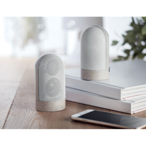 Set of 2 magnetic wireless 5.0 speakers in 30% wheat straw and 70% ABS material . TWS with auto pairing so 2 speakers can play music at the same time. 1 rechargeable Lithium 300 mAh battery included. Output data: 3W, 4 Ohm and 5V. Playing time approx. 3h.