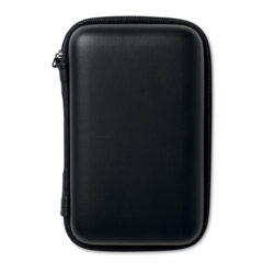 Travel set presented in EVA/PU pouch. Includes Powerbank 2000 mAh, USB car charger, micro usb cable and USB adaptor with EU plug. Power bank output current DC5V/1A.
