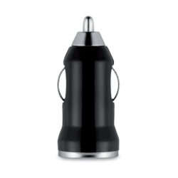 USB car charger in ABS and aluminium alloy with red light charger indicator.