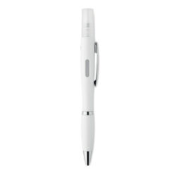 This push button antibacterial ball pen in ABS is more than just a writing tool. This pen has a special antibacterial barrel that contains a special additive (nano silver) that prevents bacteria from colonizing the surface of the pen. On top of that, it has an empty refillable spray container on the top. You can fill this with your own hand cleanser liquid. This way you always have a pen with you and something to keep your hands clean. ISO 22196. This pen has blue ink.
