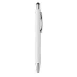Twist action stylus ball pen in aluminium with shiny chrome clip. This pen has a special antibacterial barrel that contains a special additive (nano silver) that prevents bacteria from colonizing the surface of the pen. With the stylus tip you can easily operate touchscreens without having to use your fingers. ISO 22196. The pen has blue ink.