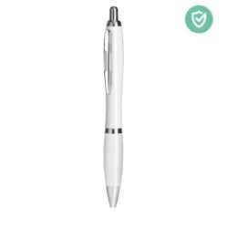 Push button ball pen in ABS with antibacterial barrel. Contains a special additive ( nano silver) that prevent bacteria from colonizing the surface of the pen. ISO 22196. Blue ink.