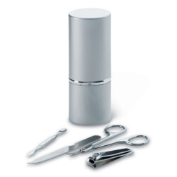 6 piece stainless steel manicure set in rectangular cork pouch. Cork is a natural material, due to its structural nature and surface porosity the final print result per item may have deviations.