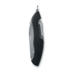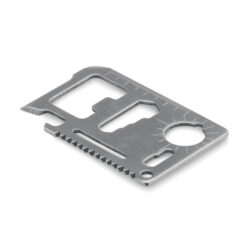 Multi-tool holder and LED torch in ABS casing with metallic finish. Includes 6 different interchangeable screwdriver heads. 3 cell batteries included.