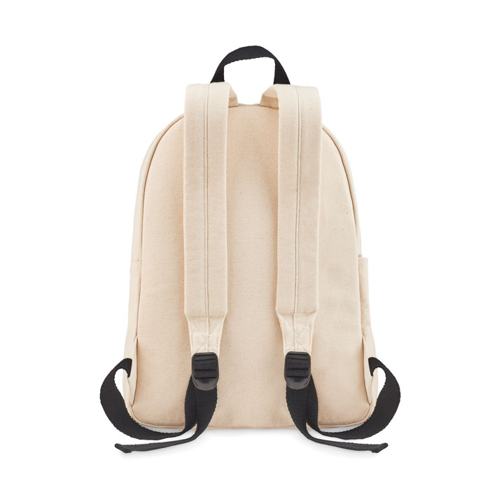 Backpack in canvas 340 gr/m² with padded back side, straps and handles. Including one side pocket and inner pocket. Store a water or drinking bottle in the side pouch so you can stay hydrated throughout the day. The main compartment has enough space for all your daily needed items. For work, school or just a day out, this bag is comfortable to wear thanks to the padded backside and adjustable straps.