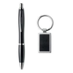 Metal pen set with ball pen and roller ball, presented in a zipped PU leather pouch in matching colour and contrasted stitching. Blue and black ink respectively.