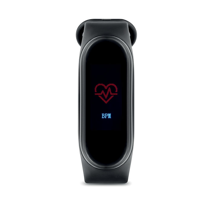 4.0 wireless low-energy health bracelet. This smart watch is great to monitor your health by tracking how active you are in your day-to-day life. It has several functions such as sedentary reminder, blood pressure, heart rate, and incoming call and social media notifications. The smart and slim design make this watch a stylish accessory to wear during the day. Connect the smart bracelet with your iOS or Android smartphone and track your health with a free downloadable app (iOS and Android). The low-energy usage will make the 90 mAh rechargeable Li-pol battery last a long time. Includes a charging cable.