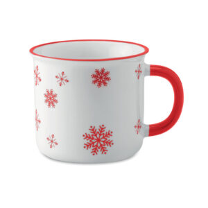 Ceramic style 290 ml vintage mug with snowflake design. Individual packaging in matching carton box. Ceramic transfer is dishwasher safe.