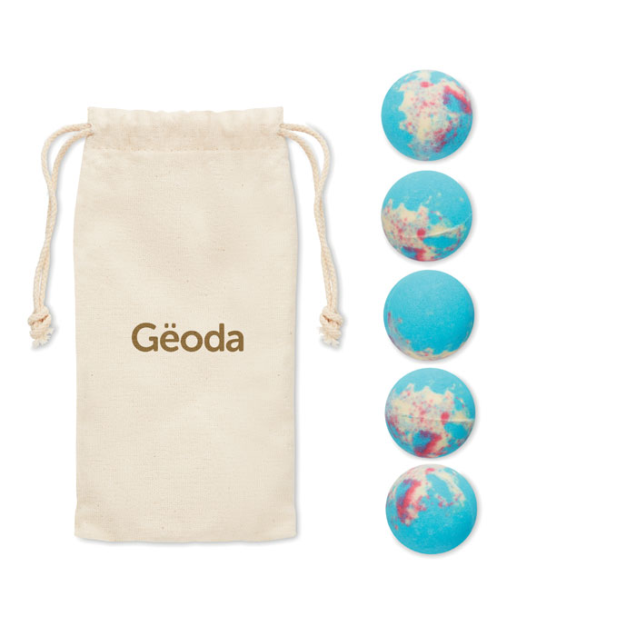 5 effervescent bath bombs set in cotton pouch. Treat yourself as if you are in a luxurious spa with these bath bombs. Fill your bathtub with vibrant colours and a wonderful Ocean scent. Close your eyes, relax and breathe in the fresh ocean smell from these bath bombs. A great way to end your day and to destress. Bomb sized Ø4 cm in Ocean scent.
