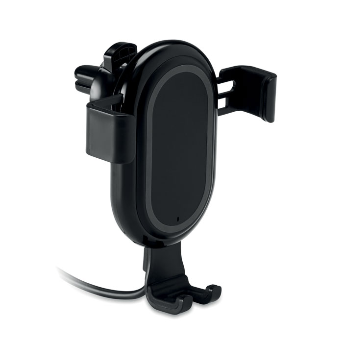 Car wireless charger mount with light up logo. Connect device place smartphone on it to begin charging. Blue light lit when charging. Output: DC5V/2.0A. Compatible with latest Androids, iPhone® 8, 8S and X and newer.