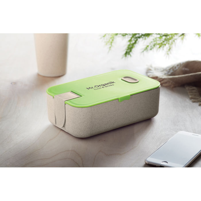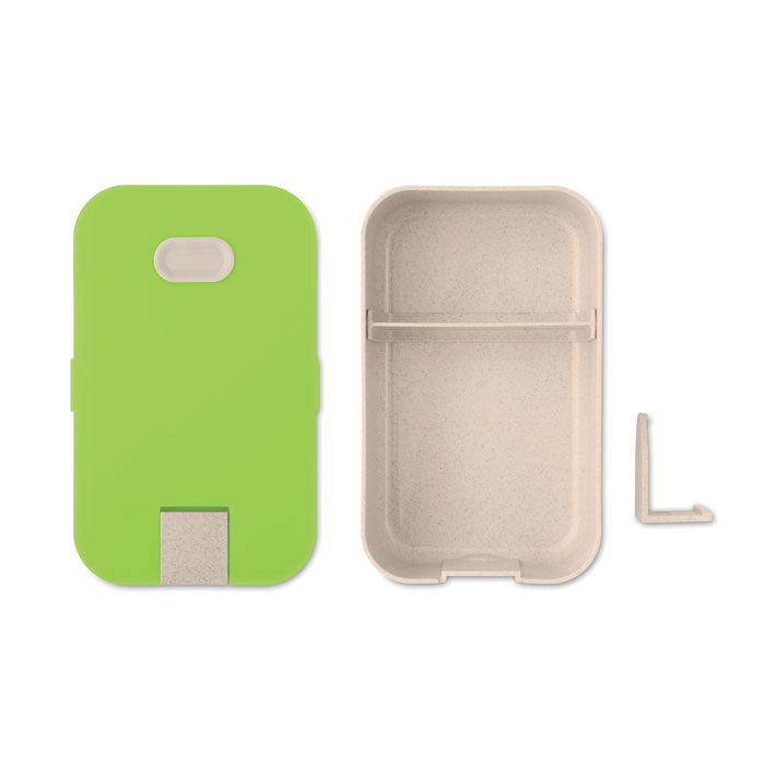 Lunchbox made of 50% wheat straw fibre and 50% PP body. Lid in PP with phone stand feature built in. ”Not available for sales in the EU’