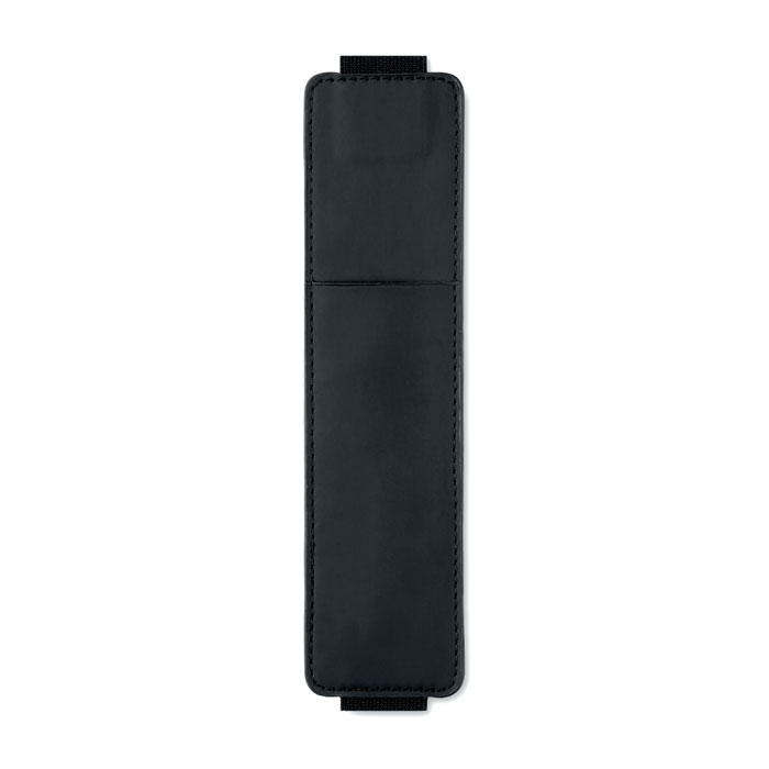 Detachable pen holder in PU for A5 notebooks with elastic band.