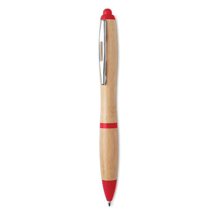 Push button ball pen with bamboo barrel and ABS fittings. Blue ink.