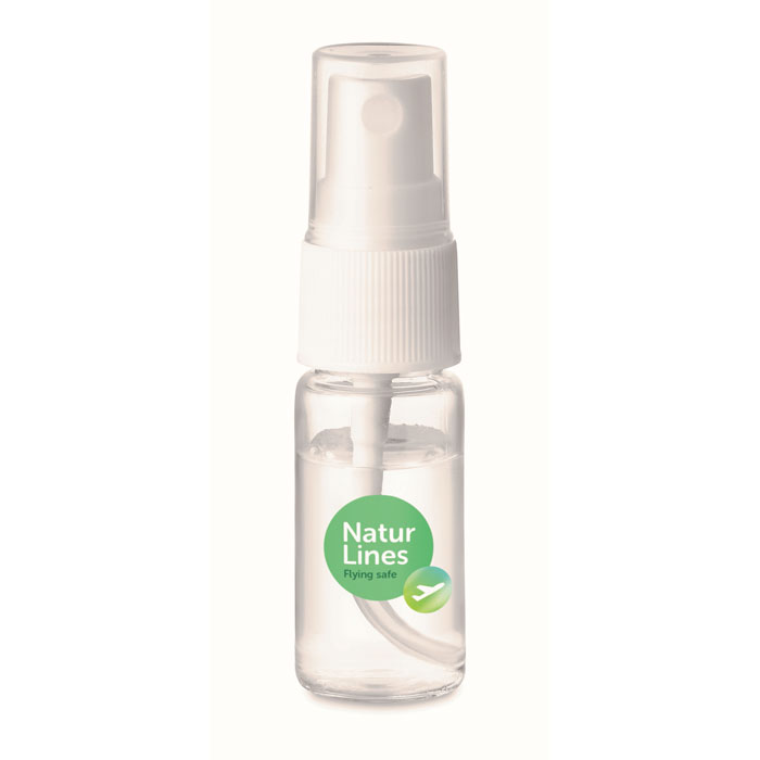 Hand cleanser spray in PET refillable bottle. Capacity 10ml. 70%-alcohol formulation. Made in EU. This product is classified as a cosmetic item.