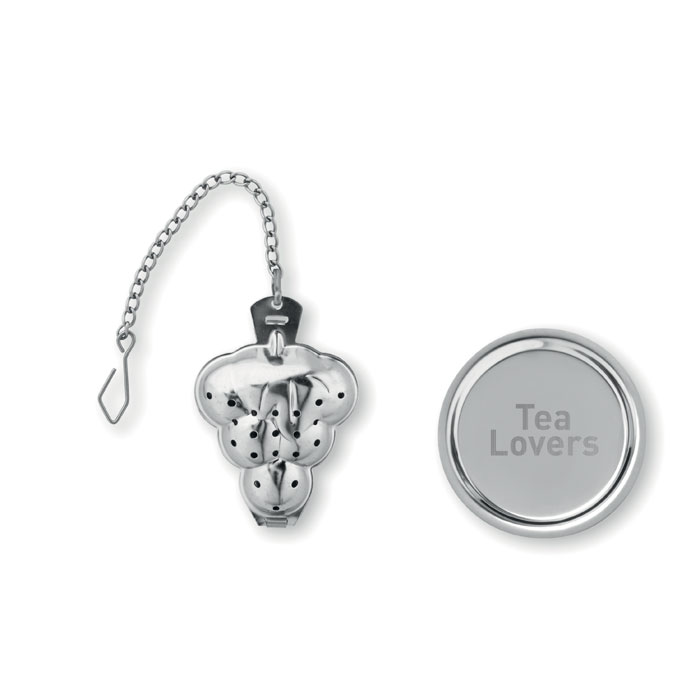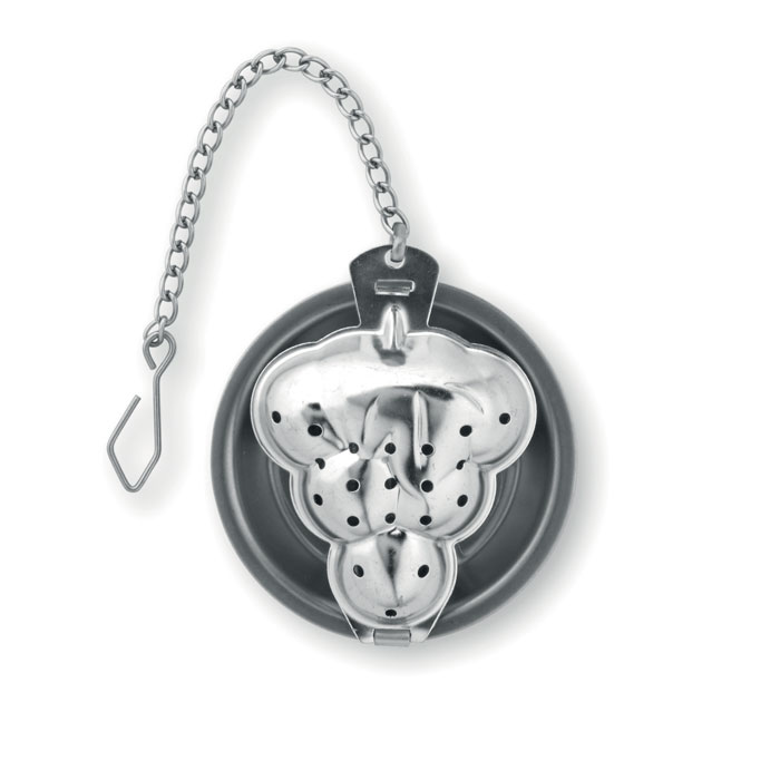 Loose Leaf Tea infuser/filter in Stainless Steel with Extended Chain and mini plate.